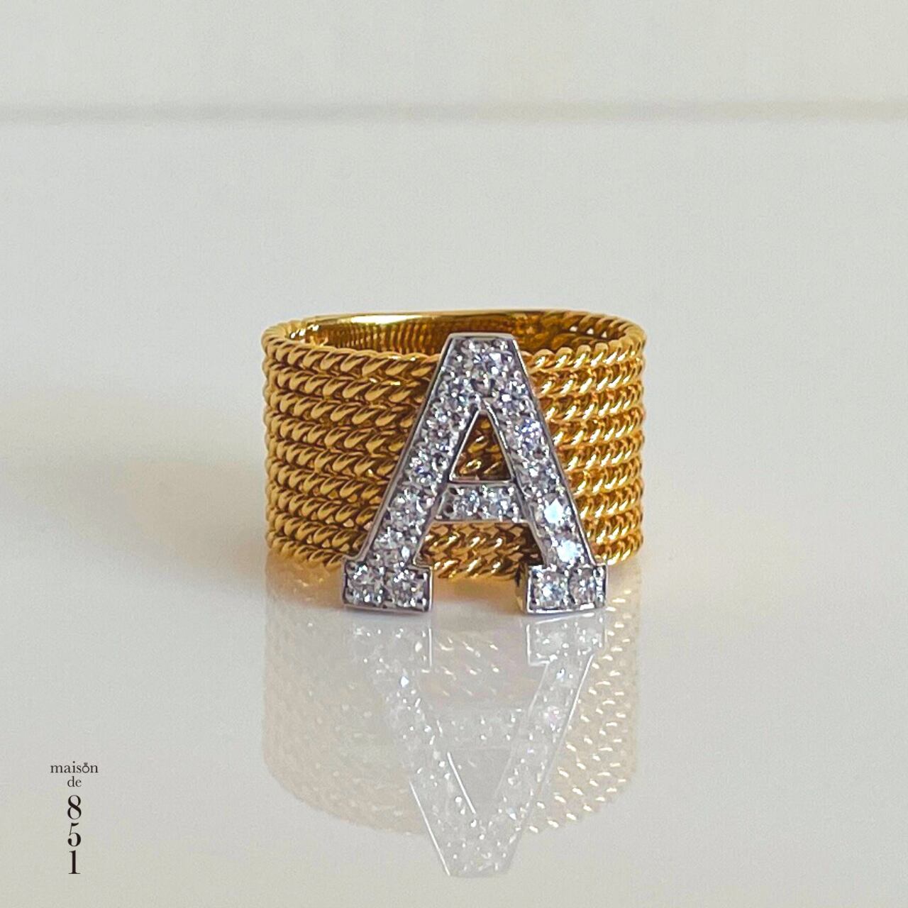K18ダイヤモンドイニシャルリング「A」 イエローゴールド&プラチナダイヤリング 【サイズオーダー可能】