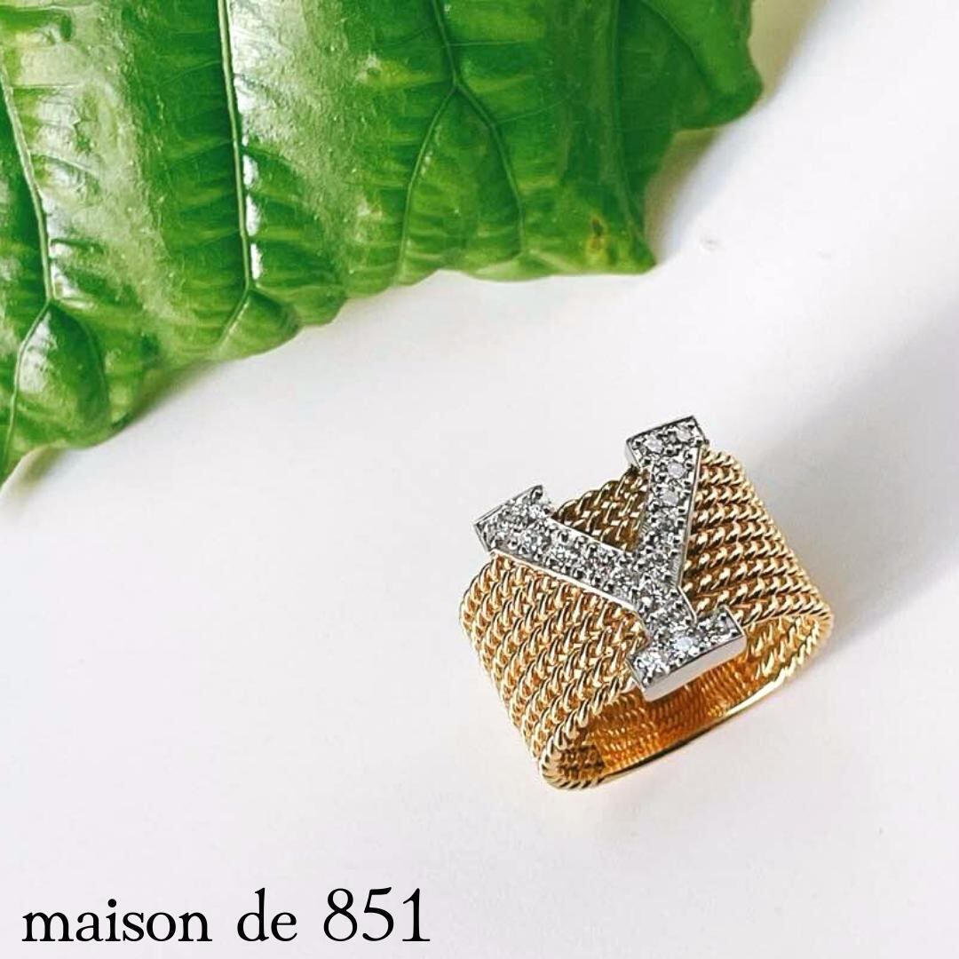 K18ダイヤモンドイニシャルリング「Y」 イエローゴールド&プラチナダイヤリング 【サイズオーダー可能】
