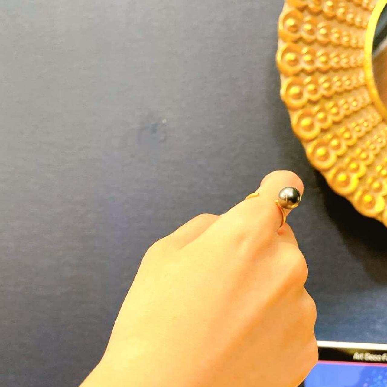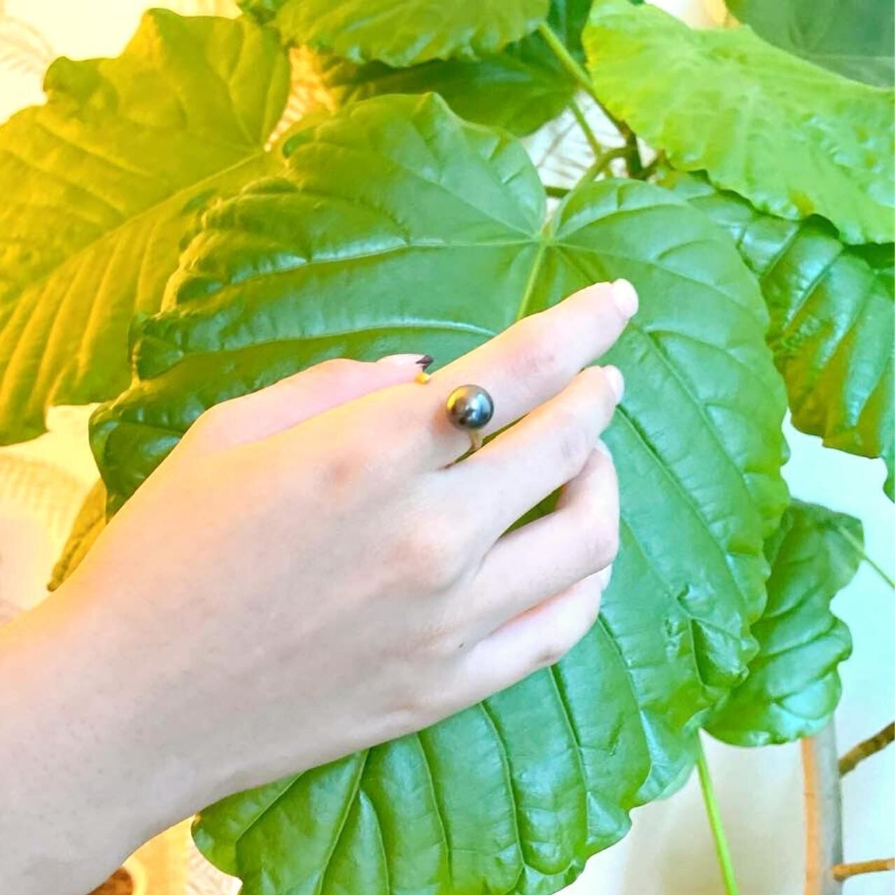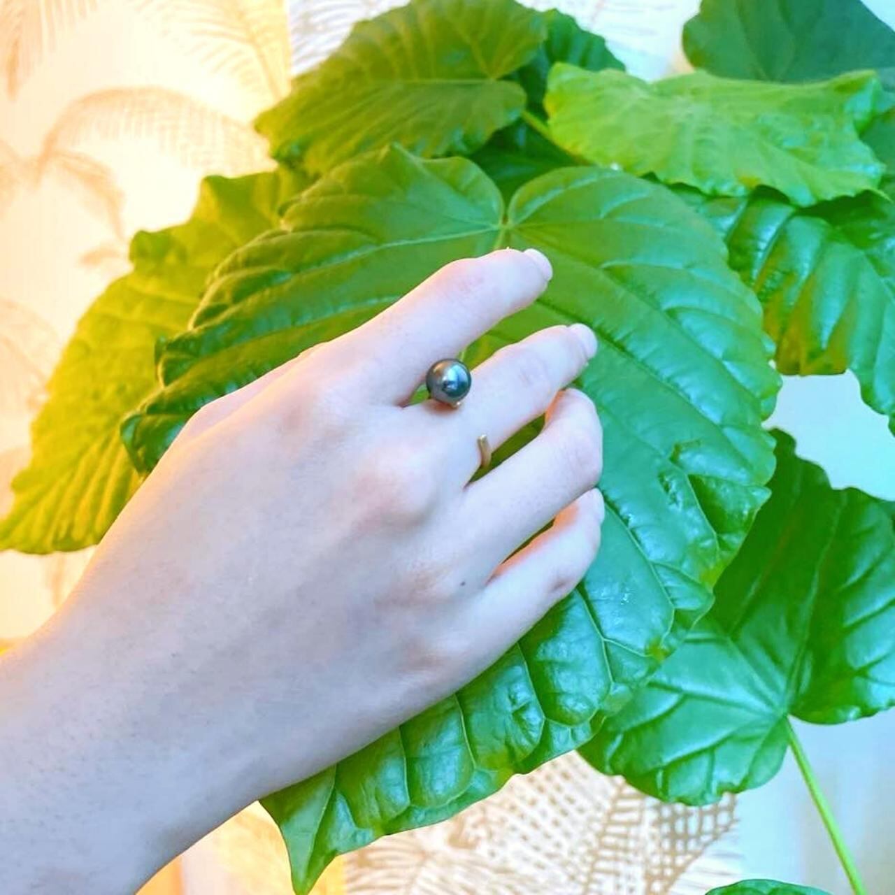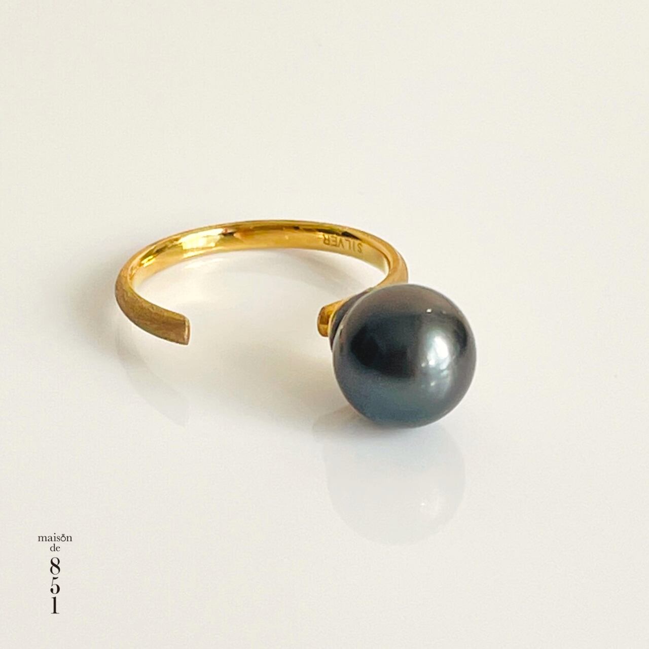 おしゃれで個性的なブラックパールリング。