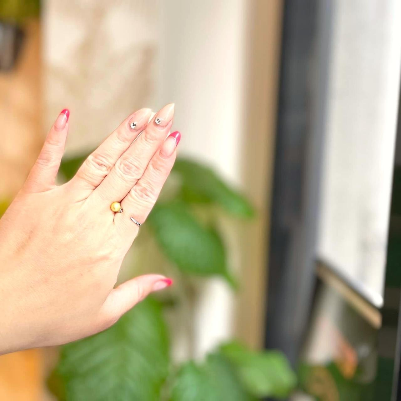他のジュエリーとの重ねづけも素敵で、真珠をおしゃれにかっこよくコーデしていただくためにデザインされたこのリングは誰ともかぶらないオリジナルリングでランクアップしたおしゃれを楽しんでいただけます。