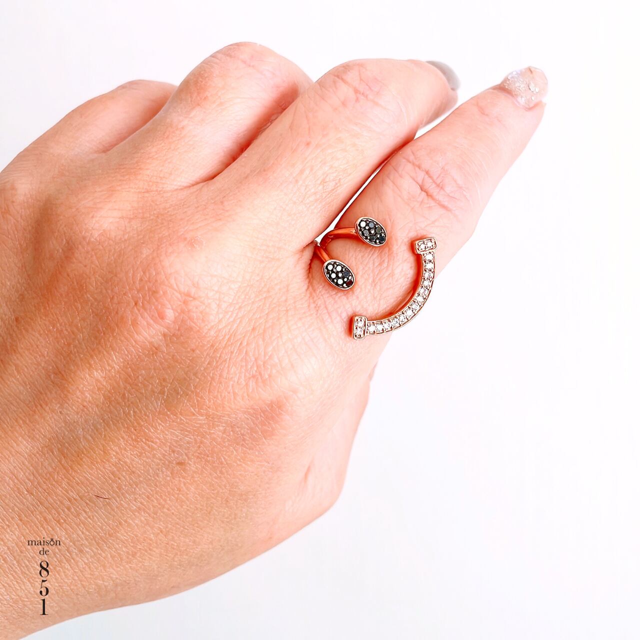 スマイルリング K18PGダイヤ&ブラックダイヤモンド ピンクゴールドリング #13 サイズオーダー可能